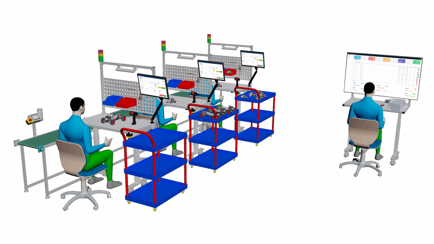 - โต๊ะคอมพิวเตอร์ 1 ชุด (Planning Desk): แยกออกมาเป็นสัดส่วนสำหรับงานวางแผนและควบคุมการผลิต ทำให้ผู้เรียนสามารถฝึกปฏิบัติในส่วนของการวางแผนการผลิต (PPC) การเก็บข้อมูล และการวิเคราะห์ผลลัพธ์ ได้อย่างครบวงจร